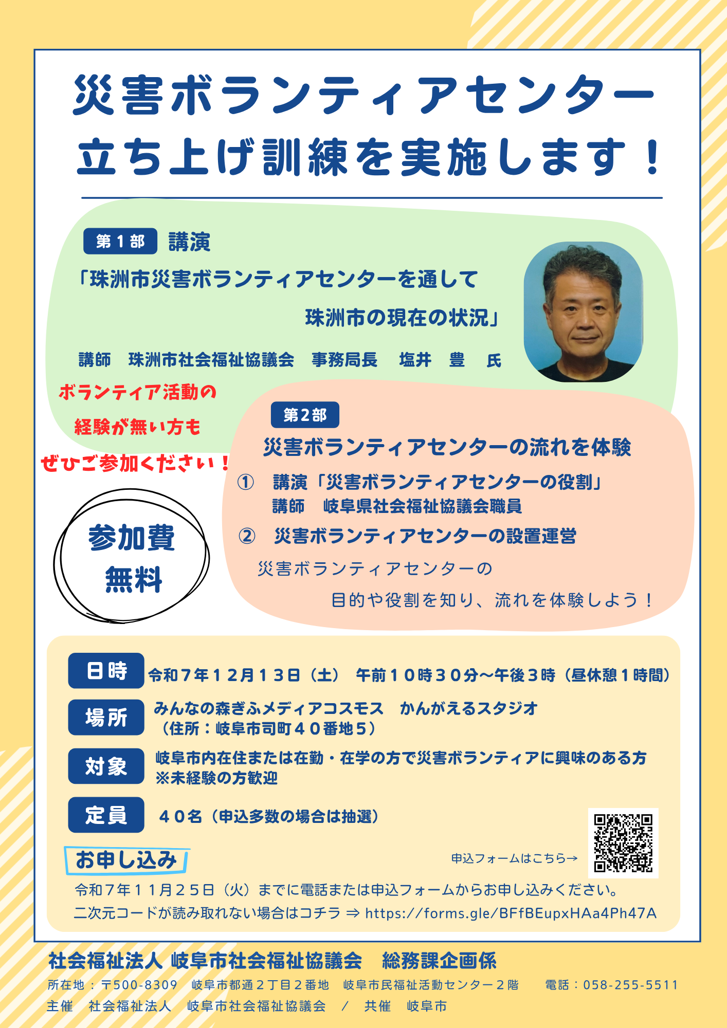 この訓練では、能登半島地震と奥能登豪雨を経験された講師から“能登の今”について講演いただき、災害ボランティアセンターの流れを体験します。